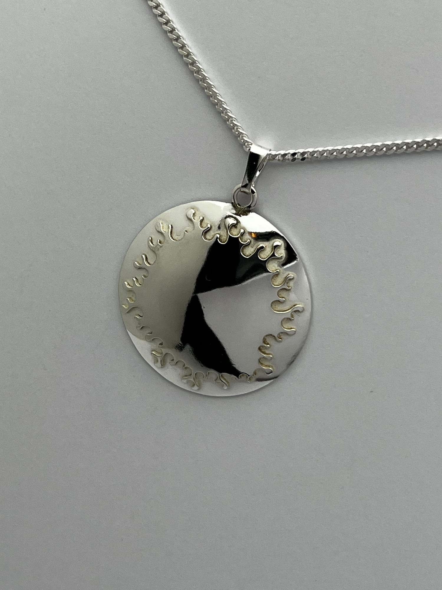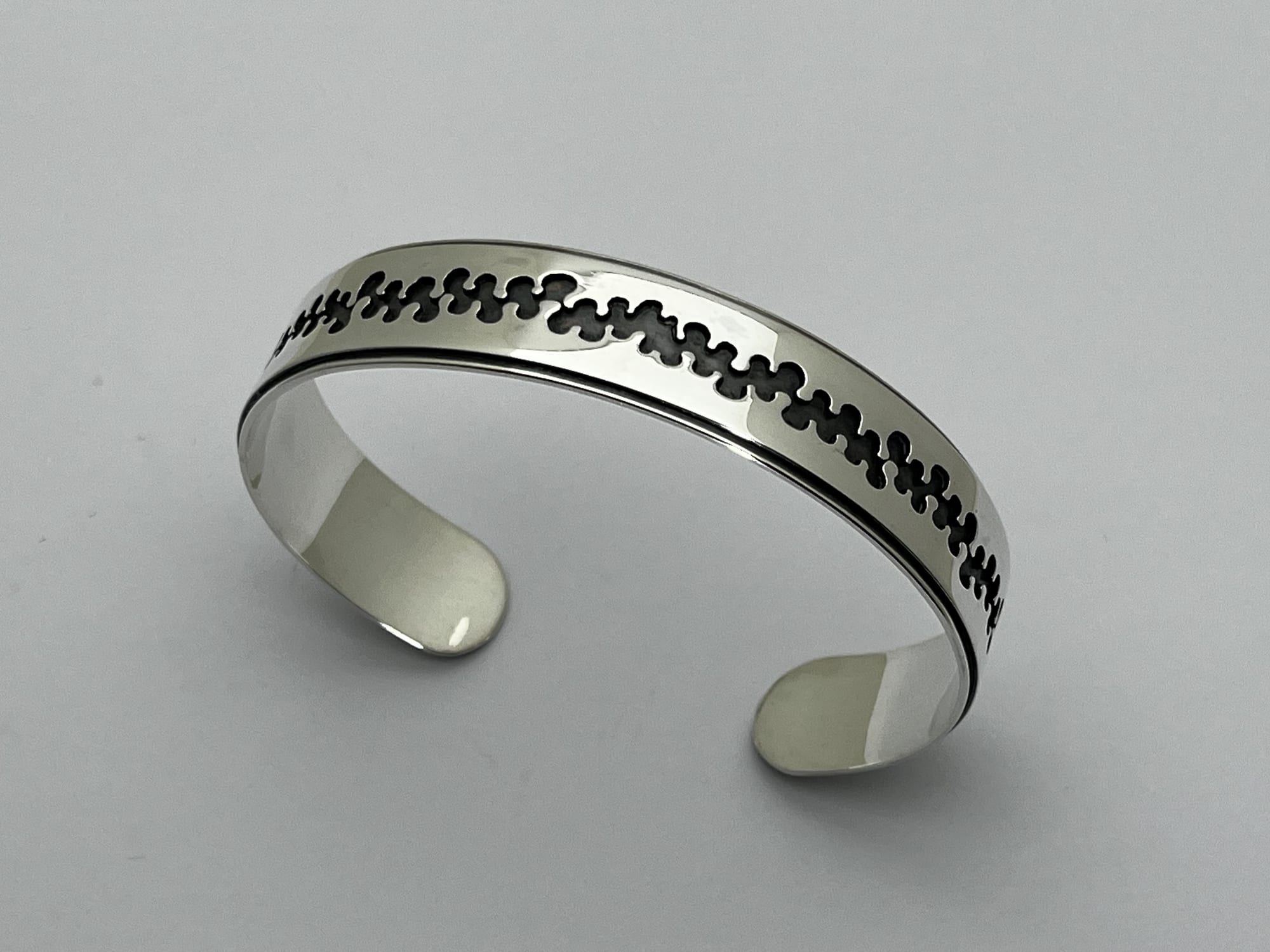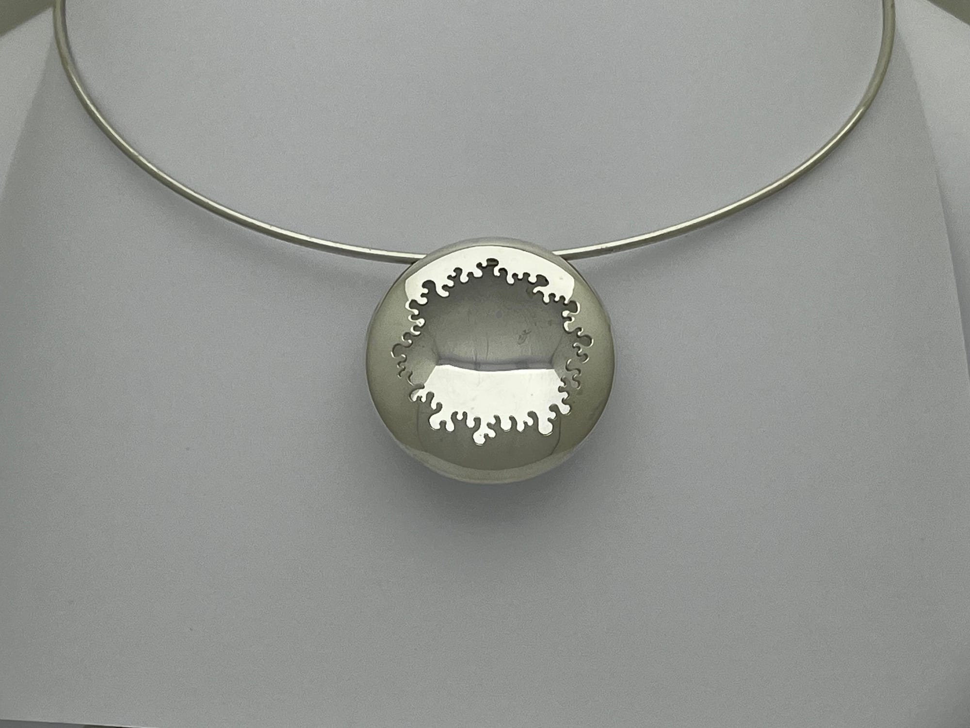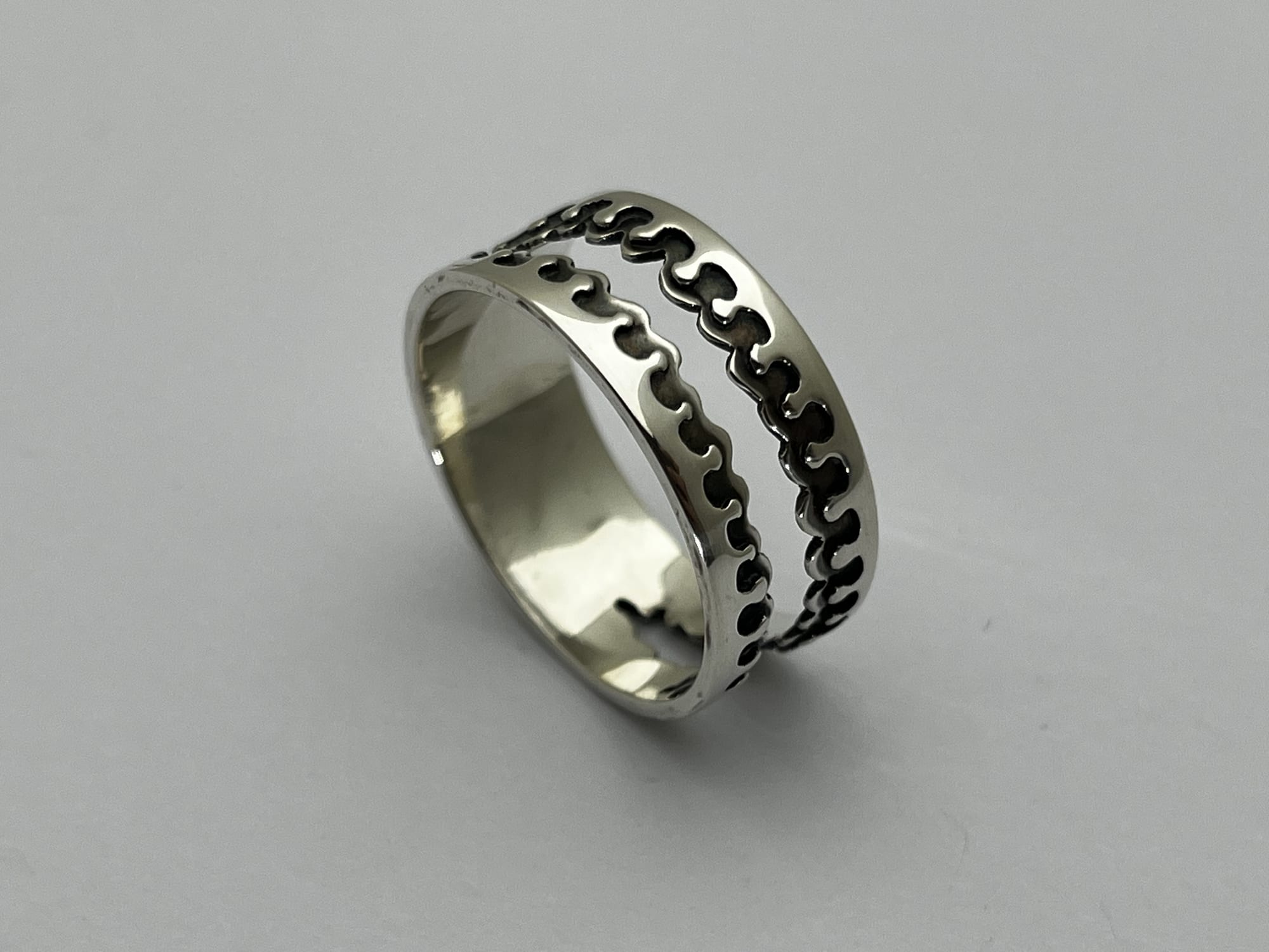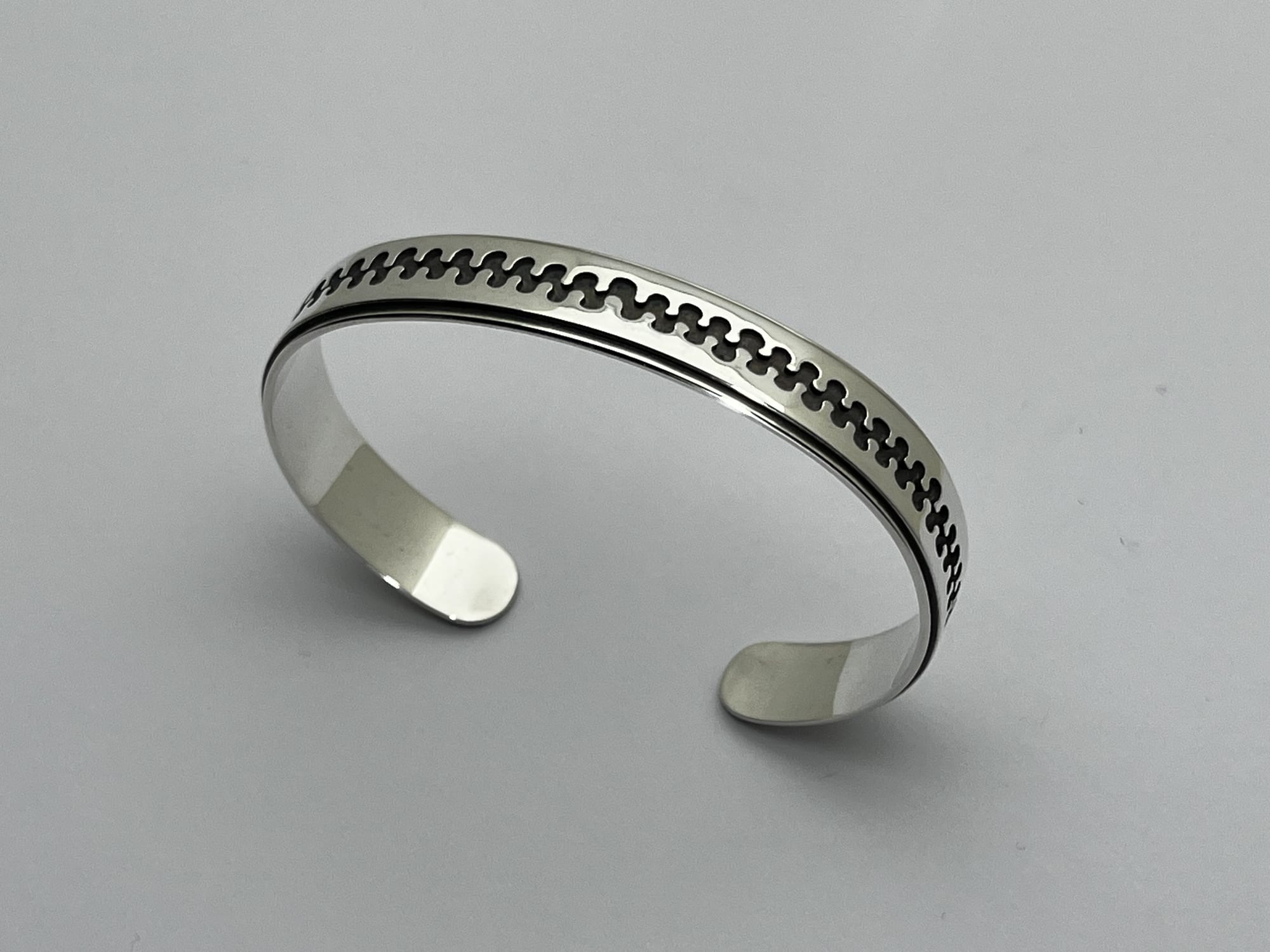 Het werk begint bij het observeren van structuren uit de natuur, vertaald naar een lijn als uitgangspunt. Ik werk met hergebruikte resten zilver, die ik omsmelt en giet tot een baat en vervolgens uitwals tot plaatmateriaal. Uit deze platen zaag ik het patroon direct, waarbij het zich tijdens het werken ontwikkelt binnen duidelijke grenzen.