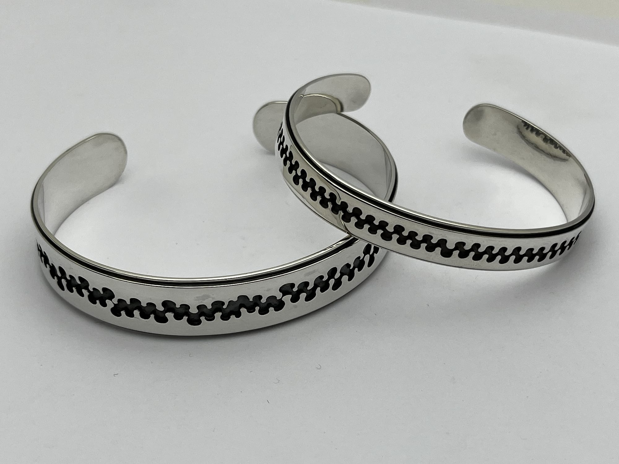 Zilveren sieraden opgebouwd uit lijnstructuren, gebaseerd op ritme en herhaling. Het werk beweegt zich tussen het organische en het technische, en tussen controle en loslaten.